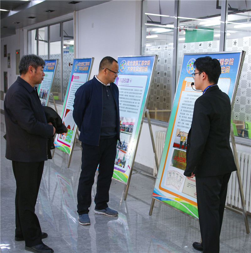 座談會前,趙海軍副校長陪同客人參觀了學校70周年展、建筑與藝術學院、圖書館、大學生眾創(chuàng)空間、能源管控中心等。