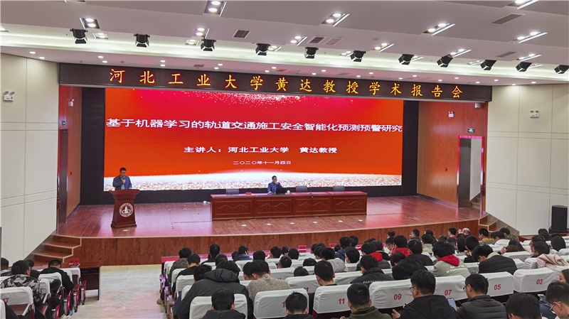 2020年11月4日下午,河北工業大學黃達教授應邀到我校進行學術交流,在新能源交流交心為我校師生做了題為《基于機器學習的軌道交通施工安全智能化預測預警研究》的專題報告。報告會由土木工程學院副院長(主持工作)董捷教授主持,土木工程學院師生參加了報告會。
