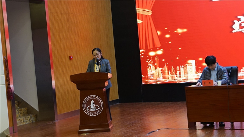 機械工程學院黨委書記王潔代表學院發言,她向獲得表彰獎勵的先進集體和個人表示熱烈祝賀,向學校黨委及有關部門和辛勤耕耘在人才培養第一線的教師表示衷心感謝和崇高敬意。她指出,我院深入貫徹落實習近平新時代中國特色社會主義思想,全面貫徹落實黨的教育方針,時刻牢記“求實進取”的校訓,始終秉承學校的辦學理念、辦學模式和辦學方向,緊緊圍繞立德樹人根本任務,各項工作取得了長足進步,培養了一批最富活力、最具創造性的青年群體。王潔書記也對青年學生提出殷切希望:作為新時代的青年,應進一步發揚“艱苦樸實,勤奮進取”的校風,敢于擔當、勇于奮斗,努力做新時代具有責任意識和創新精神的建設者,做新時代具有遠大理想和堅定信念的愛國者,做新時代具有過硬本領和高尚品格的接班人。