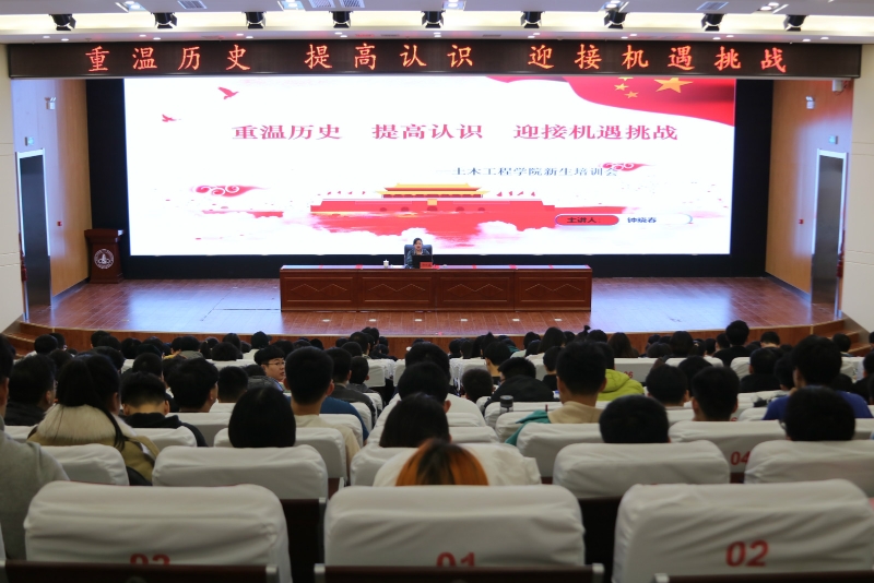 2020年11月19日土木工程學院在新能源報告廳召開題為《重溫歷史 提高認識 迎接機遇挑戰》的愛國主義教育活動,通過學習黨史、新中國史、改革開放史、社會主義發展史,幫助學生了解歷史、銘記歷史、從歷史中感受艱苦奮斗,改革創新的時代精神,使他們充分認識到新時代中國特色社會主義面臨的挑戰和機遇,樹立和堅持正確的歷史觀、國家觀,用更加飽滿的熱情和知行合一的態度去完成學業,擔負責任和使命。