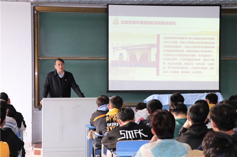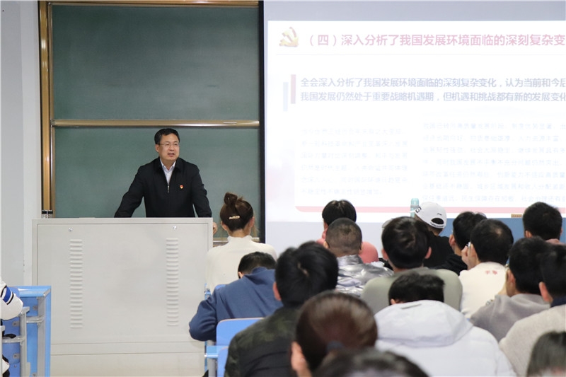 領導進課堂,宣講聚共識。根據省委統一要求、主題教育安排及學校安排,11月25日下午,校黨委書記王海龍教授在明德樓406宣講黨的十九屆五中全會精神,圍繞黨的十九屆五中全會的歷史方位、十九大以來黨和國家各項事業取得的偉大成就、進入新發展階段黨和國家面臨的新機遇和新挑戰、2035年遠景目標和“十四五”發展規劃等方面,向大一新生宣講黨的十九屆五中全會相關內容,并勉勵學生刻苦學習、拼搏進取,將自己的青春融入兩個一百年奮斗目標,為中華民族偉大復興而不懈努力。