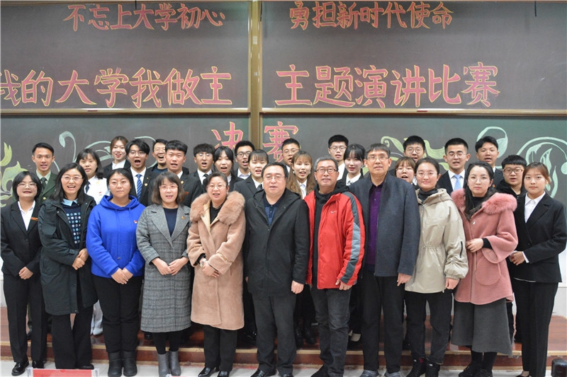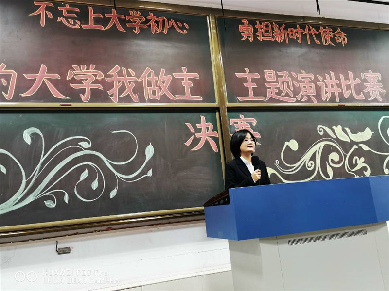 為落實大學思政課程立德樹人的使命,由社科部主辦,校團委、學生會承辦“我的大學我做主”主題演講比賽決賽于12月24日下午在主教102圓滿結(jié)束。數(shù)理系黨委書記李映霞、土木工程學院黨委書記鐘曉春、信息工程學院黨委副書記劉曉慧、社科部教授趙寶新、韓仰熙、學生資助中心主任陳麗娜、建藝學院輔導員忻益慧擔任比賽評委。社科部主任李箭飛、思想道德修養(yǎng)與法律基礎教研室主任李秀芳出席比賽。