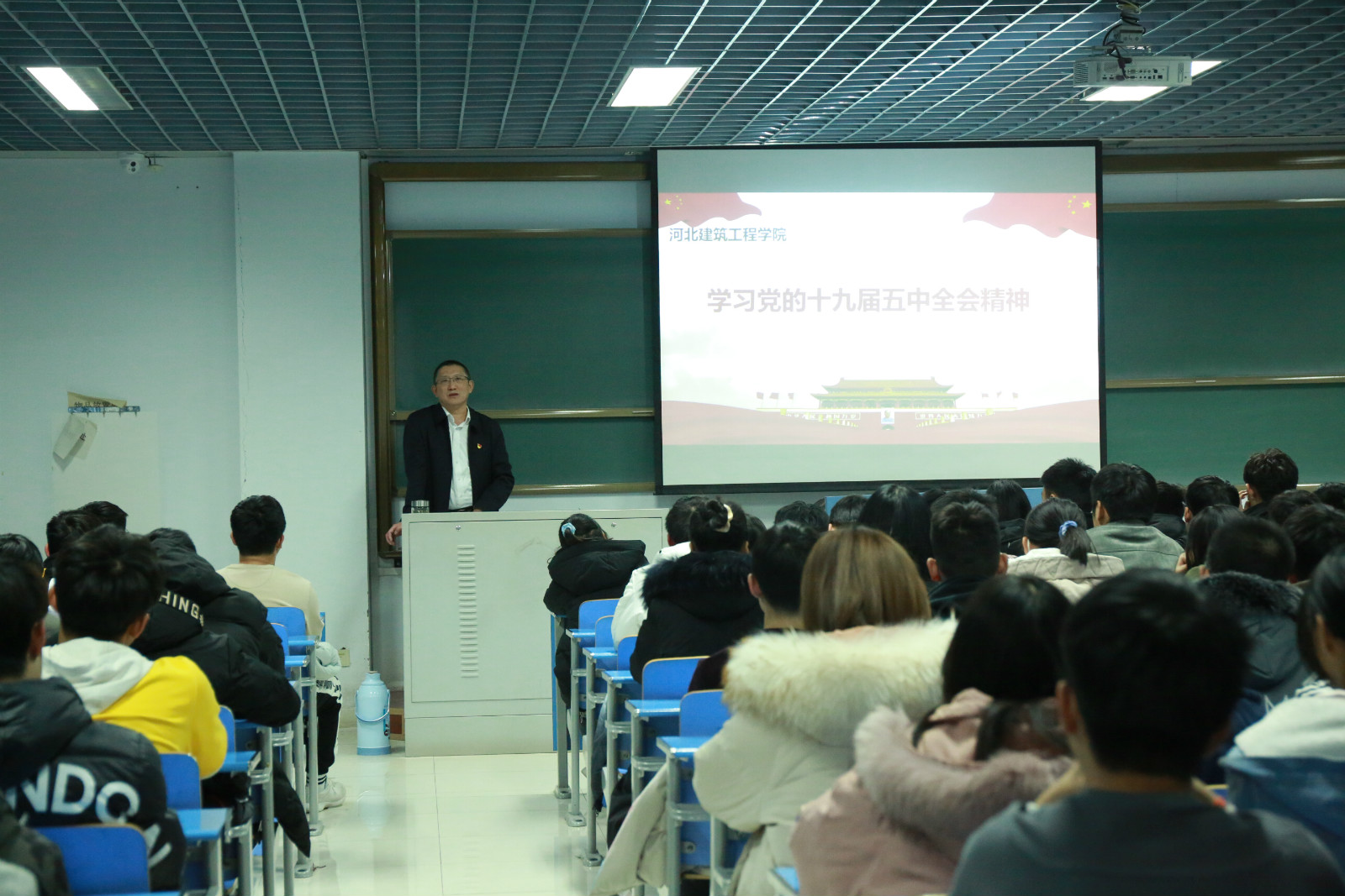 星河欲轉千帆舞,九萬里風鵬正舉。為持續開展深入宣傳十九屆五中全會精神系列宣講活動,及時保質保量完成省委統一要求部署、落實學校主題教育安排,11月27日晚,校長師涌江教授在明德樓306作宣講報告,學校教師代表、學生代表參加了宣講報告會。