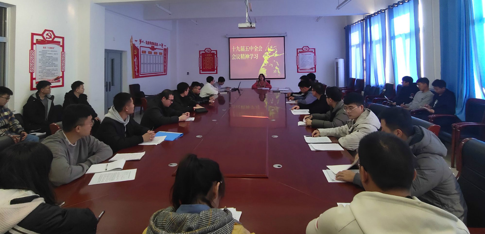 首先,學院組織中心組理論學習,在進行 “十九屆五中全會公報”的學習基礎上,以全會精神為指引,把學校在績效改革、學科評估、疫情防控以及安全穩定等方面決策部署和工作要求落到實處。其次學院開展班子成員講黨課活動,召開全體師生黨員參加“十九屆五中全會精神解讀會”。第三加強對重要崗位人員的重點培訓和座談,組織科級以上干部、教研室實驗室主任,各支部書記開展了 “《邁出新步伐 開啟新征程》 十九屆五中全會學習交流會”,在會上大家認真研討、深入領會,在規范制度執行、拓展學科優勢,轉變工作方法等方面暢所欲言。第四發揮支部功能,教工支部和五個學生支部以分散學與集中學相結合,開展形式多樣,內容豐富的精神學習和宣講。第五利用新媒體如公眾號、QQ群、微信群等引導廣大師生開展線上學習,達到全體師生跟進學,學習范圍全覆蓋。