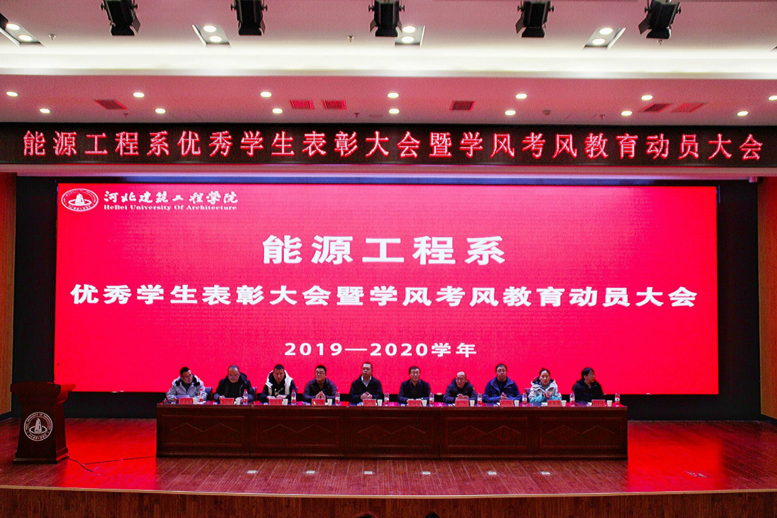 期末將近,為表彰先進(jìn),促學(xué)風(fēng)、嚴(yán)考風(fēng),能源工程系于12月11日在新能源交流中心隆重召開2019-2020年度先進(jìn)表彰暨學(xué)風(fēng)考風(fēng)教育動員大會。會議由能源工程系團(tuán)總支書記張力學(xué)主持,學(xué)生處處長孫彬、教務(wù)處副處長楊慶峰、系黨總支書記李樹新、主任孫勇、各科室負(fù)責(zé)人、全體輔導(dǎo)員、全體學(xué)生干部及受表彰的先進(jìn)集體代表和個人出席了會議。