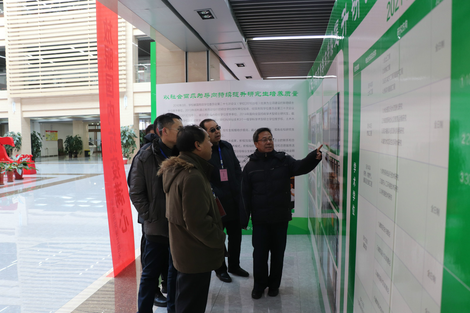 匯報會上,校黨委書記王海龍致辭,他對評估專家組表示熱烈歡迎并介紹了學校的發展情況,他要求各相關單位本著“以評促建、以評促教、以評促管、以評促改”的目的,全面系統地評價我校學科建設水平,找出不足和短板,積極整改,努力提升。土木工程學院副院長董捷、建筑與藝術學院院長郭曉君、信息工程學院副院長趙建光分別匯報了本學科研究生培養和學科建設情況。匯報結束后,專家組到土木工程學院、能源工程系、市政與環境工程系、圖書館、建筑與藝術學院實地考查了研究生培養實驗室和科研平臺,并詳細審閱了學科評估相關材料。