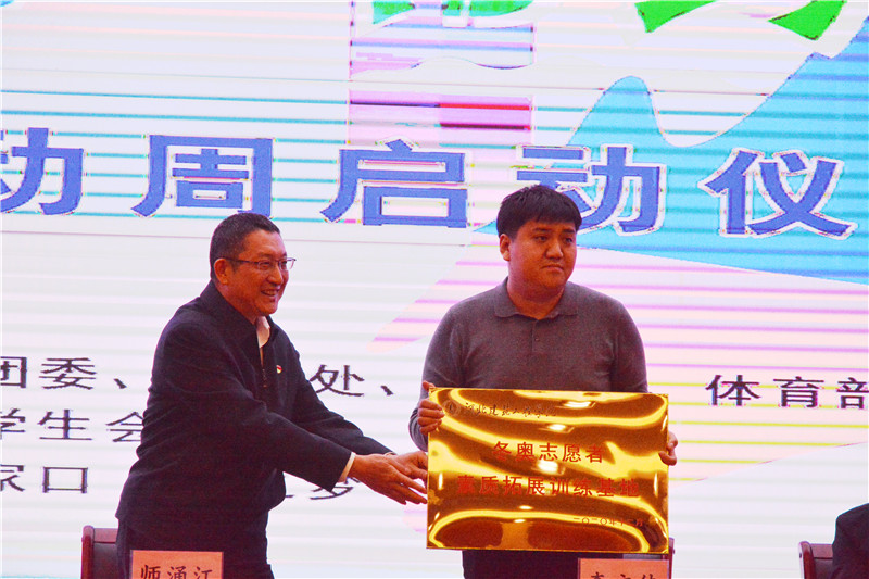 儀式上,師涌江代表學校向高新城投總經理(張家口冰之夢滑冰場負責人)李文佳頒發了“冬奧志愿者素質拓展基地”牌匾,授予教師骨干志愿者 “相約2022’2138cn太陽集團青年志愿者冰雪訓練營”旗幟;喬銳軍、孫彬、趙連成、閆磊磊代表學校向張家口冰之夢滑冰場劉寶玉、李秋香、校體育部任立峰、孫海泉發放了冬奧志愿者素質拓展教練聘書;青年志愿者代表工195劉宇航發言表達了對本次冰雪運動周能夠更加了解冰雪運動的真正魅力的美好愿望和為冬奧會的順利籌辦助力青春力量的炙熱誓言。