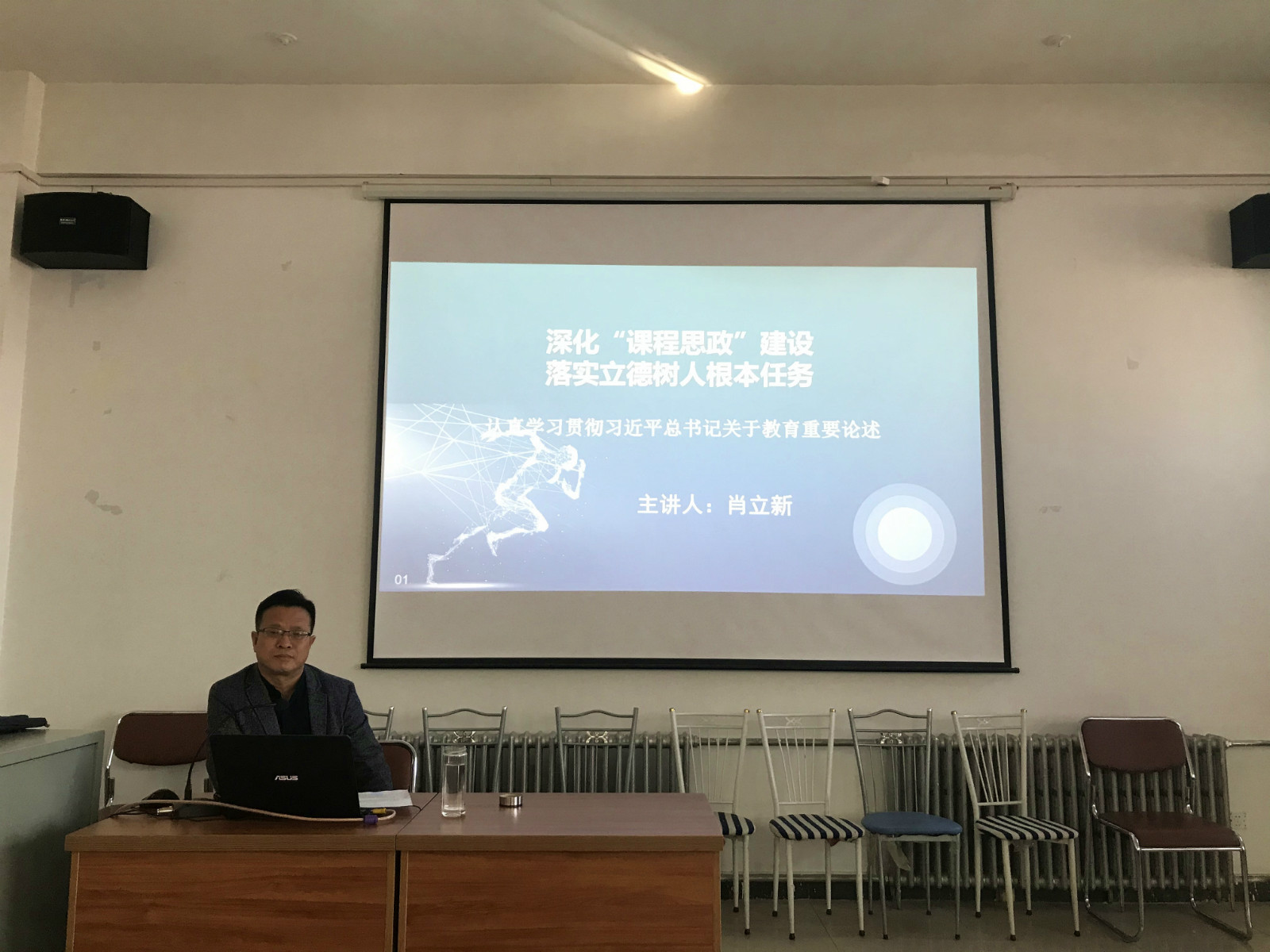 肖立新部長從“課程思政”建設提出的背景、意義做了深入講解,針對日常工作中反映出來的對“課程思政”一些錯誤的、片面的認識和理解給予糾正,從建設的主體、地位、作用、內容、方式、功能等方面闡釋了“課程思政”的內涵,應用課程案例對推進“課程思政”建設的方法途徑進行了輔導,提出加強頂層設計、抓住關鍵要素、突出黨支部功能、發揮積極引導作用、深化教育改革方向、把握理工科專業特點、建設“課程思政”教育共同體等七方面建議。與會教師紛紛表示,肖立新部長的講座指導性和針對性很強,令大家受益匪淺。