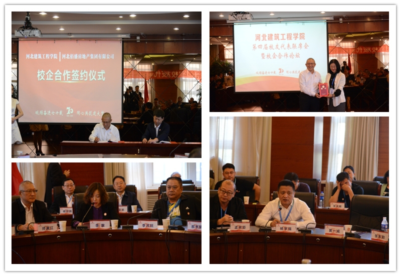 師涌江校長代表學校分別與華清安泰(北京)科技股份有限公司、北京中博匯信科技有限公司、北京中能筑科建筑科技有限公司、河北佰盛房地產集團有限公司、大元建業集團股份有限公司、張家口市塞洋建筑設計公司等6家校友企業簽署了校企合作協議,并為來自北京、天津、石家莊、唐山、秦皇島、邯鄲、保定、張家口、承德、滄州、廊坊、衡水等地的33位校友代表們頒發了就業創業導師證書。師校長代表全校師生向校友們的積極參會表示感謝,他指出,學校在70年的辦學歷程中,為國家和社會培養了一大批優秀建設人才,4萬多校友在不同工作崗位上為國家建設和社會發展作出了突出貢獻。近幾年來,校友們在發展自身事業的同時,都在以不同方式關心著母校發展,開創了校友企業與母校共贏發展的新局面。他從攜手合作、開放包容、資源共享三個方面提出了加強校友合作共同體建設的基本思路。指出建設建筑大學是學校的使命,也是全體師生員工和廣大校友的目標,希望大家對照更名大學指標體系,進一步明確任務,努力拼搏,共同繪就學校改革發展的新篇章。