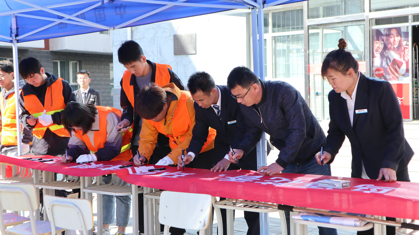 活動最后,參加活動人員在“綠色校園,鳥語花香,環(huán)保成果,你我共建”橫幅上簽名,并向全校師生發(fā)出“人人愛護美麗校園,個個爭當(dāng)環(huán)保標兵”的倡議。