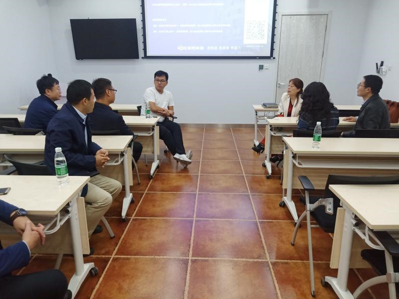 考察團首先到訪的是獨角獸企業-北京貍米科技公司總部,在貍米科技師資總監張志永,校招總負責人王昭君,北京師資負責人何托楊的陪同參觀了貍米科技總部的相關設施,對該公司的運作機制有了進一步的了解。考察團與貍米科技相關負責人在教育理念、人才培養模式、員工培訓、企業文化打造等方面深入交換了意見。通過交流了解了彼此的優勢與特色,并發現了彼此深入合作的諸多領域,初步達成了進一步產教研融合的愿景。