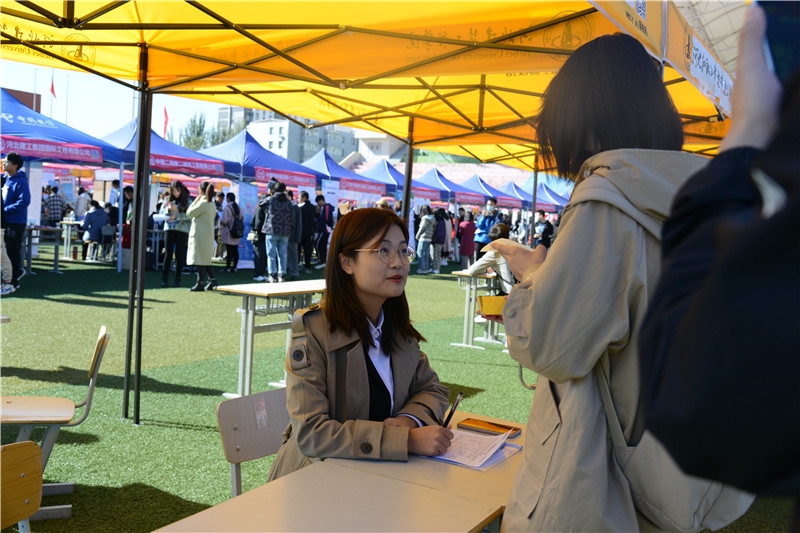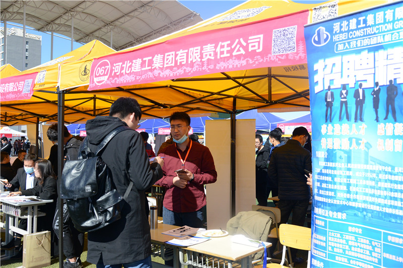 本次雙選會在設置工程施工、規劃設計、綜合服務區域的基礎上,增加了征兵宣傳區域,邀請張家口區武裝部進行宣傳動員,展示退役大學生青春風采。會場設立了就業指導服務中心、志愿服務點、院系工作點、醫療救治點、安全保衛點,提供簡歷指導、政策咨詢、手續辦理、廣播通知、撰寫打印等一站式服務店;特別設置了茶歇供應點,由建筑與藝術學院師生、半時光咖啡創業團隊精心布置,免費供應甜品、糕點、水果以及各類熱飲;各級學生組織和學生干部協助布置帳篷和桌椅,張貼單位名稱牌,一對一志愿者提前與參會代表對接,全程配合做好招聘工作,用周到服務溫暖了用人單位朋友的內心,贏得了用人單位和學校師生的廣泛贊譽。