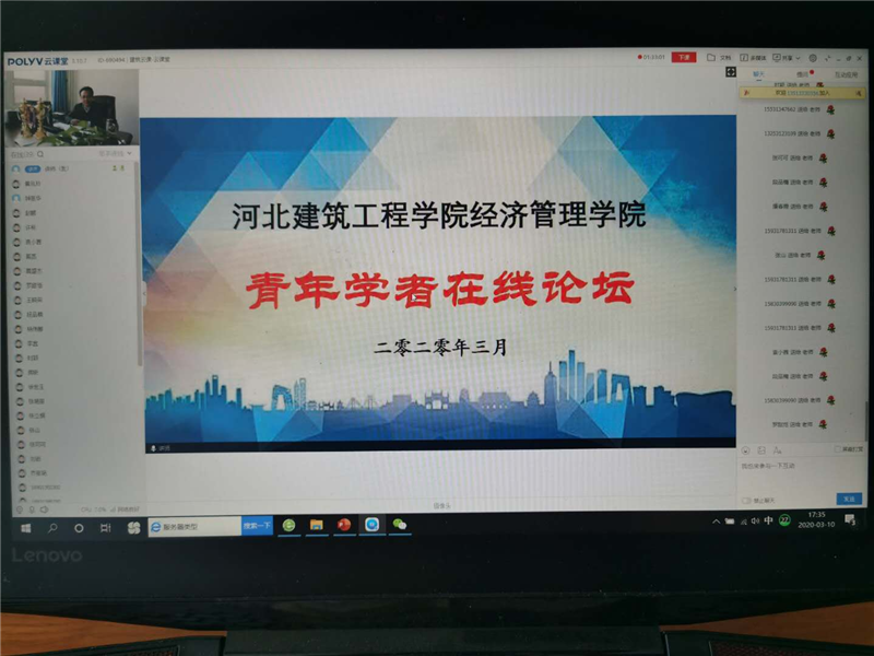 按照國家教育部、省教育廳新冠肺炎疫情期間“延期不延教、停課不停學”要求,結合當前學院疫情防控實際情況,經管學院共克時艱、迎難而上,借助建筑云課直播軟件,創新研學形式,開辟青年學者論壇新陣地。