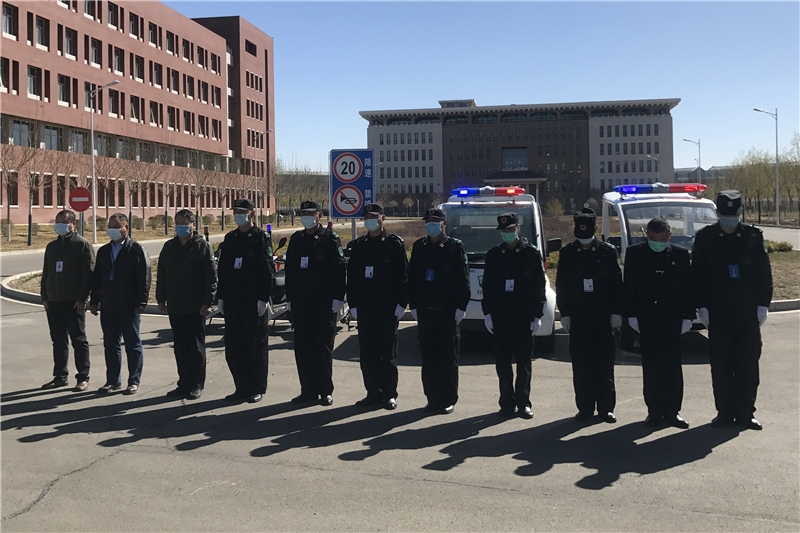 4月4日10時起,在黨委書記王海龍帶領下,學校西門門衛檢查點、校內施工項目現場、物業服務現場、安全監控及消防總控室等區域的在校職工莊嚴肅立,舉行哀悼活動,為新冠肺炎疫情犧牲烈士和逝世同胞默哀3分鐘,校園巡邏車鳴笛,表達對烈士和逝世同胞的深切哀悼。