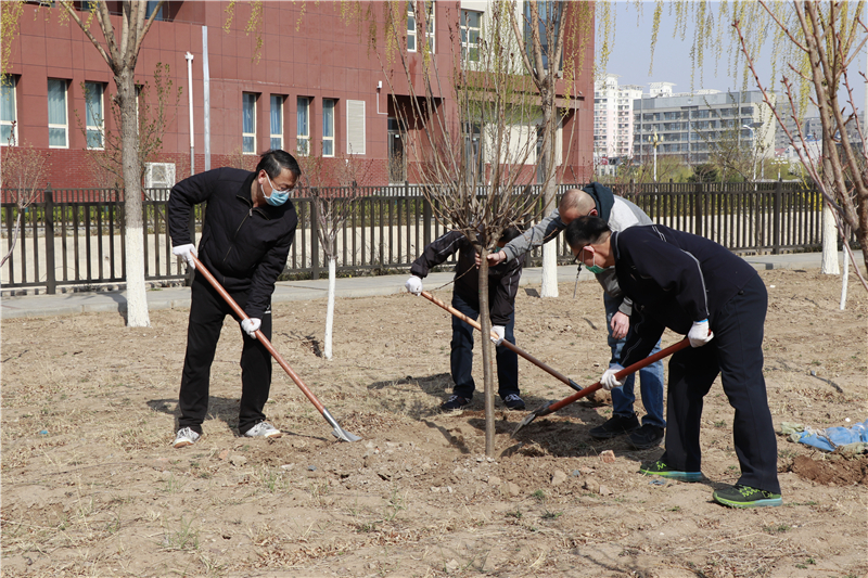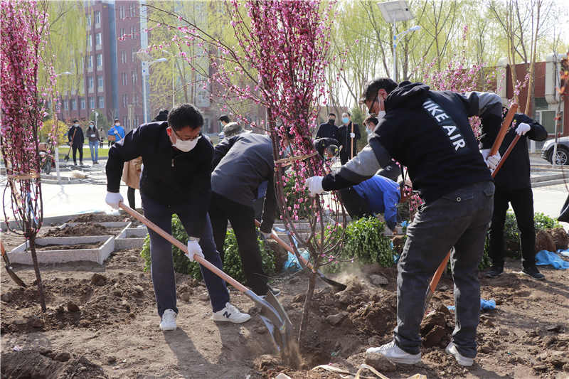 植樹活動分別在主教學樓東側櫻花園與行政樓西側林蔭停車場進行。活動現場熱火朝天,干勁十足。大家揮鍬培土,拎桶澆灌,分工合作,配合默契,扶苗、對齊,培土、踩實,澆水……每一道工序都一絲不茍。通過大家的共同努力,本次植樹活動共種植櫻花、山桃、太陽李、紅葉李、榆葉梅等品種樹苗100余株。此次活動,不僅美化了校園環境,也進一步增強了大家的生態意識與勞動意識,感受到了勞動讓生活更美好。