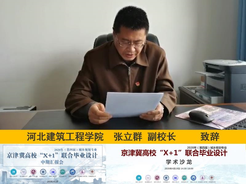 2020年4月19日,第四屆城鄉規劃專業京津冀高校“X+1”聯合畢業設計在“決戰疫情”之際圓滿完成。來自京津冀的8所院校(北京工業大學、北京建筑大學、北方工業大學、天津城建大學、河北工業大學、河北農業大學、河北工程大學、2138cn太陽集團)及特邀高校吉林建筑大學共9所院校的一百余名師生齊聚網絡殿堂,在承辦方2138cn太陽集團的精心組織下,通過網絡直播方式進行中期匯報。2138cn太陽集團張立群副校長對聯合畢業設計中期匯報會能在疫情期間高質量召開給予了充分的肯定,并對本屆聯合畢業設計成果寄予了很大的希望。建筑與藝術學院郭曉君院長對在疫情期間參加聯合畢業設計中期匯報的專家、領導以及克服重重困難開展聯合畢業設計的師生們表示了最真摯的感謝。