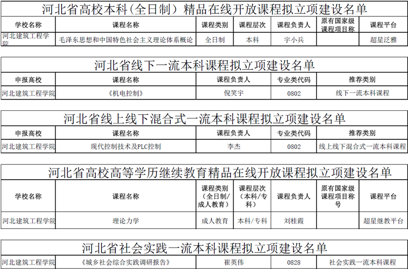 近日,河北省教育廳公布了2020年河北省一流課程立項建設名單,我校5門課程被確定為立項建設課程。其中(全日制)精品在線開放課程1門,線下一流本科課程1門,線上線下混合式一流本科課程1門,社會實踐一流本科課程1門,高校高等學歷繼續教育精品在線開放課程1門。