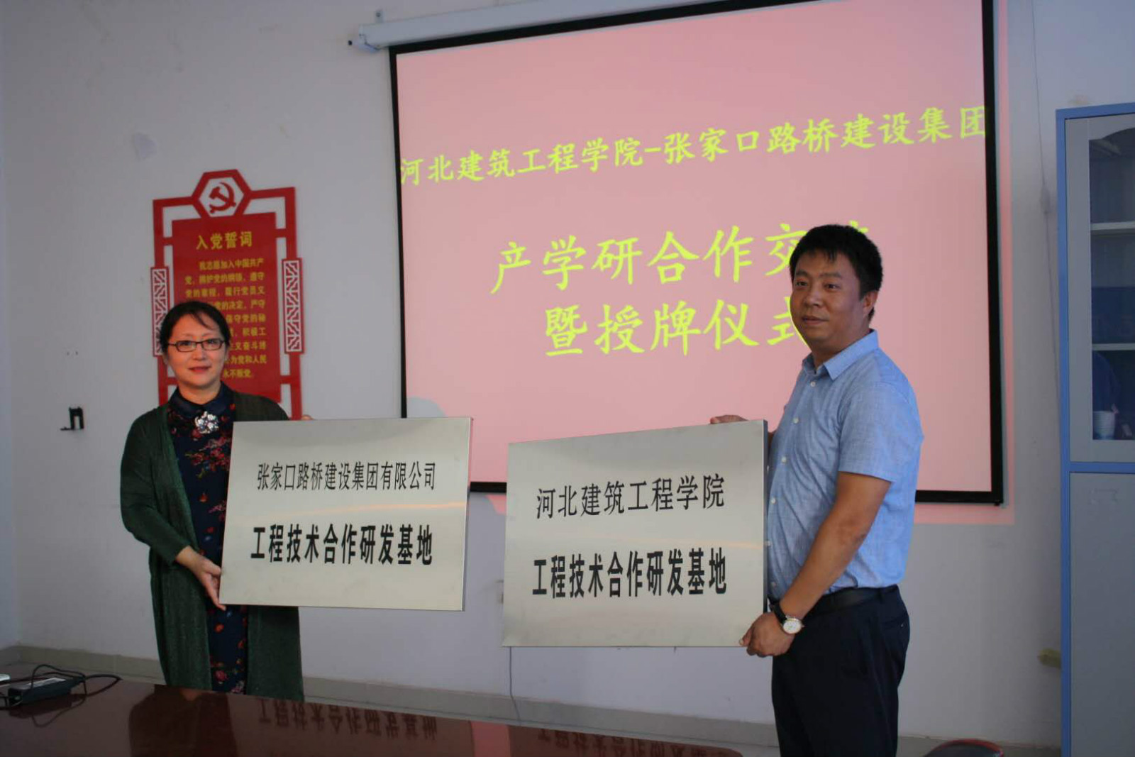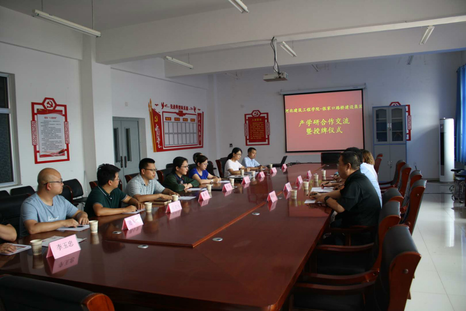 7月30日,土木工程學院與張家口路橋建設集團在土木樓309會議室進行了校企產學研用合作交流,并舉行工程技術合作研發基地授牌儀式。參加交流會的有2138cn太陽集團副校長姚冰、土木工程學院黨委書記鐘曉春、副院長(主持工作)董捷、張家口路橋集團副總經理鄭瑞海、張鈺、廉瑞金以及部分教師和企業代表,會議由鐘曉春書記主持。