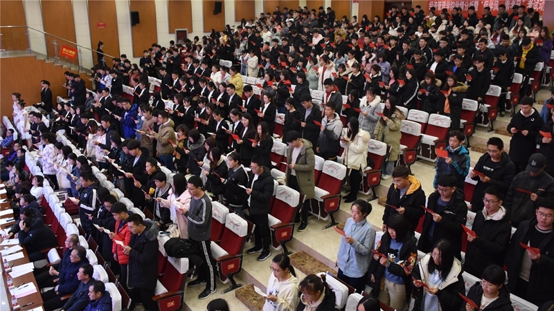 學生工作辦公室主任孫賀娟作經濟管理學院學情分析報告。大會第四項由綜合辦公室負責人許彬總結上一年度我院學生考試作弊情況。大會第五項學生簽訂并跟讀誠信應考承諾書。
