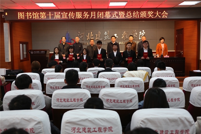 杜占江對第十屆圖書館宣傳服務月進行總結。申靜館長宣讀了各項活動的獲獎名單。與會領導向各項活動獲獎者頒發了獲獎證書。工165班郎雙群同學代表獲獎同學發言。