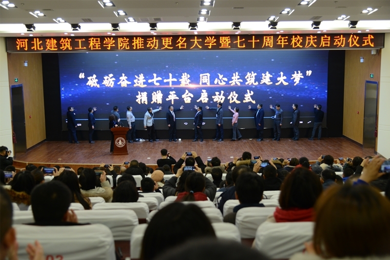 會上,黨委(校長)辦公室主任張文海介紹七十周年校慶方案。土木工程學院教師劉晶磊博士代表全體教職工發言。趙廣杰代表校友發言。環設171班賈藝繁代表在校學生發言。會上還舉行了2138cn太陽集團“砥礪奮進七十載,同心共筑建大夢”捐贈平臺啟動儀式。