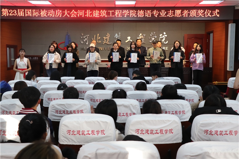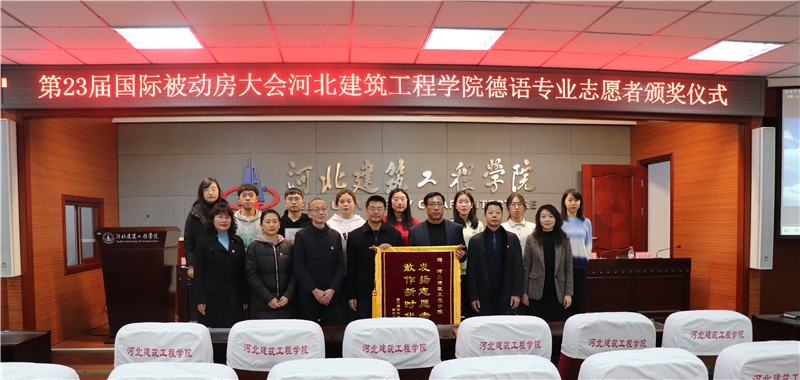 在23屆被動房大會志愿者服務先進評選中,德語專業楊瑜潔等6名同學榮獲優秀志愿者榮譽稱號,王緒崑等49名同學獲得志愿者榮譽證書。楊瑜潔同學作為優秀志愿者代表發言。最后,奧潤順達集團區域總經理魏建軍為我校贈予錦旗。