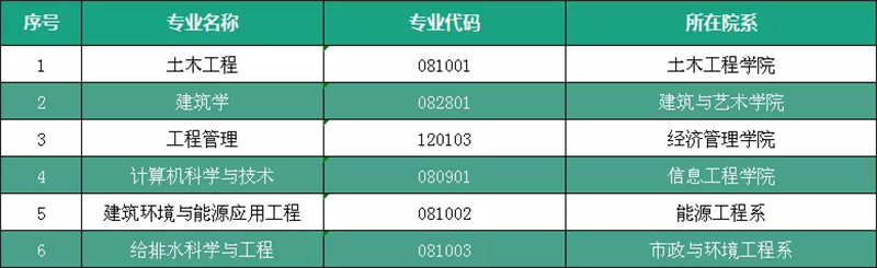 學校現有土木工程、建筑學和計算機科學與技術3個學術型碩士學位授權點,機械、電子信息、資源與環境、能源動力、土木水利和設計6個專業型碩士學位授權點,研究生培養工作分布在土木工程學院、建筑與藝術學院、信息工程學院、經濟管理學院、能源工程系、市政與環境工程系、機械工程學院和電氣工程學院。
