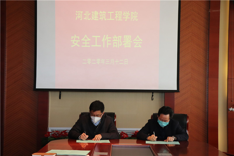 會上,黨委(校長)辦公室、資產管理處、校園安全與后勤管理處負責同志代表各單位簽訂了《2020年安全、綜治、維穩工作目標管理責任書》。