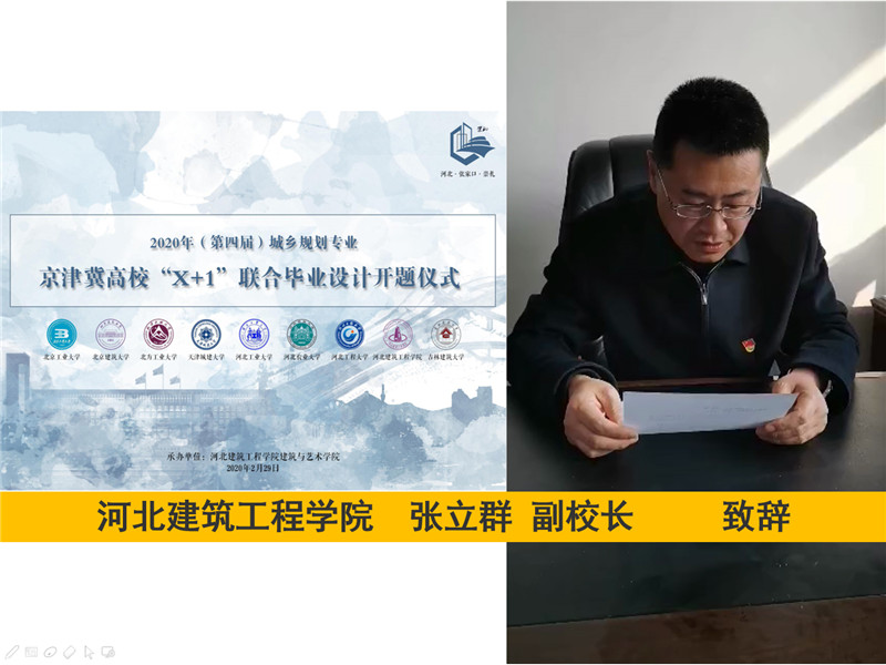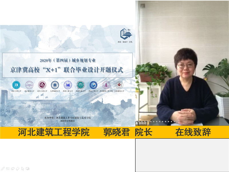 2020年2月29日上午,第四屆城鄉規劃專業京津冀高校“X+1”聯合畢業設計在“抗疫”期間如期召開。來自京津冀的8所院校(北京工業大學、北京建筑大學、北方工業大學、天津城建大學、河北工業大學、河北農業大學、河北工程大學、2138cn太陽集團)及特邀高校吉林建筑大學共9所院校的一百余名師生齊聚網絡會議室,在承辦方2138cn太陽集團的精心組織下,通過網絡視頻的方式圍繞“疫情防控”期間畢業設計的場地調研、資料收集、溝通聯系平臺等問題進行了深入的交流探討。會議邀請了中國城市規劃學會耿宏兵副秘書長、2138cn太陽集團張立群副校長、2138cn太陽集團建筑與藝術學院郭曉君院長等領導參加了在線活動,各位領導對本次聯合畢業設計如期在“疫情”期間啟動給于了高度的評價,并對本屆聯合畢業設計成果寄予了很大的希望。