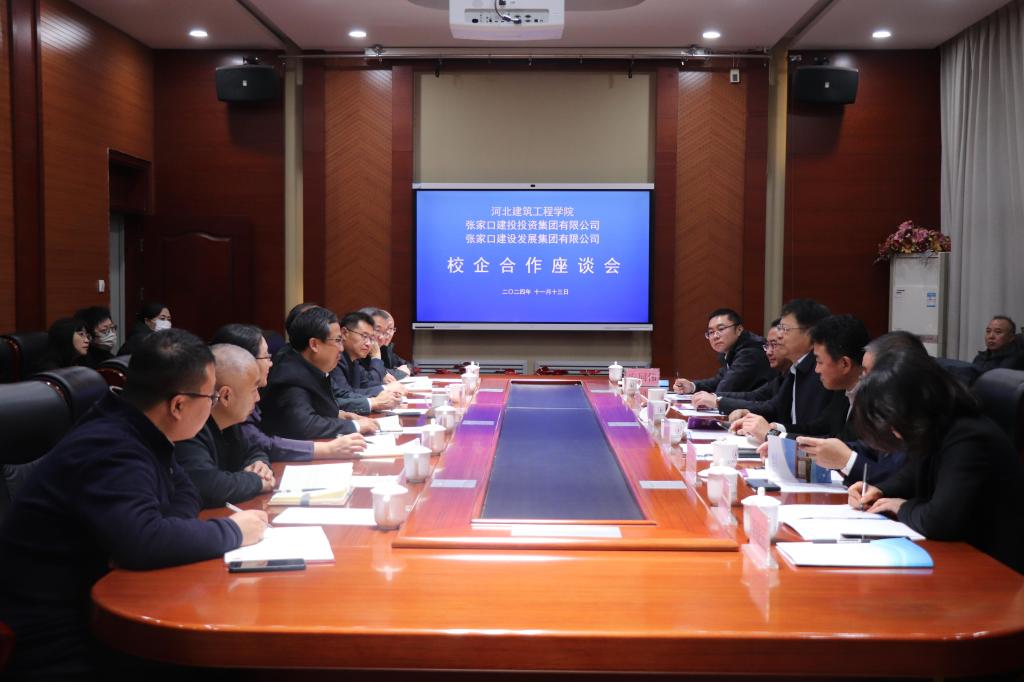 活動結束后,學校領導、相關職能部門及二級院系負責人與張家口建設投資集團有限公司和張家口建設發展集團有限公司代表召開了產學研合作交流座談會。座談會由校黨委書記翁維素主持,校長王建民,副校長姚冰、張立群出席會議,雙方就進一步加強校企科研聯合攻關、擴寬技術合作領域及人才訂單式培養等問題進行了深入交流,并達成初步合作意向,為下一步深入校企合作的精準對接奠定了良好基礎。