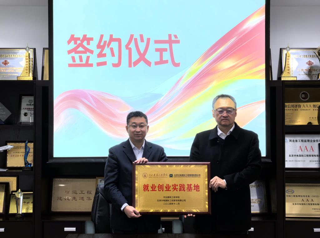 12月5日至6日,副校長趙海軍帶隊赴北京走訪了北京市建設監理協會、北京興電國際工程管理有限公司、北京方圓工程監理有限公司、北京希達工程管理咨詢有限公司,并舉行就業創業實踐基地共建簽約和授牌、揭牌儀式。學生處處長孫彬、學生處就業指導與服務中心主任楊薇參加了合作交流活動。