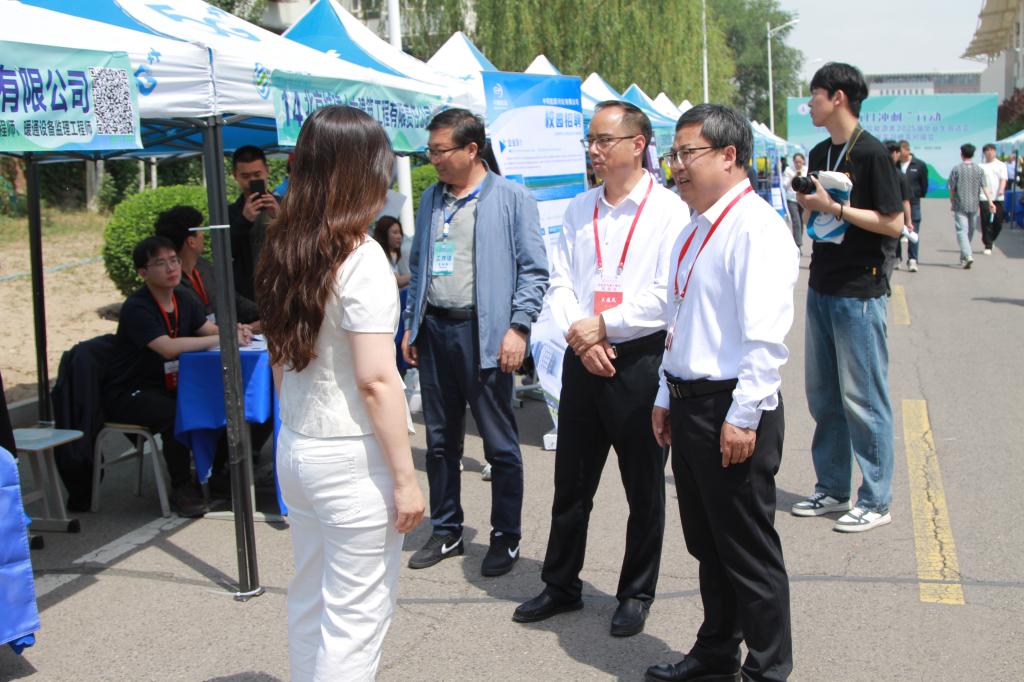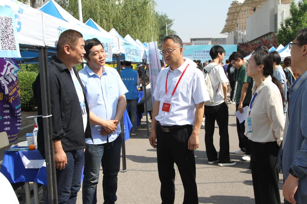校黨委書記翁維素、校長王建民、副校長趙海軍深入雙選會現場,與河北華電冀北新能源有限公司、河北省第四建筑工程有限公司、藍焰高科(天津)燃氣技術有限公司、北京雙圓工程咨詢監理有限公司等用人單位代表就產教融合創新、人才培養優化、職業發展構建等維度展開深入交流,聽取用人單位對人才培養的意見建議,感謝用人單位長期以來對學校就業工作和人才培養工作的大力支持,并希望企業能夠給畢業生提供更多的工作機會和平臺。