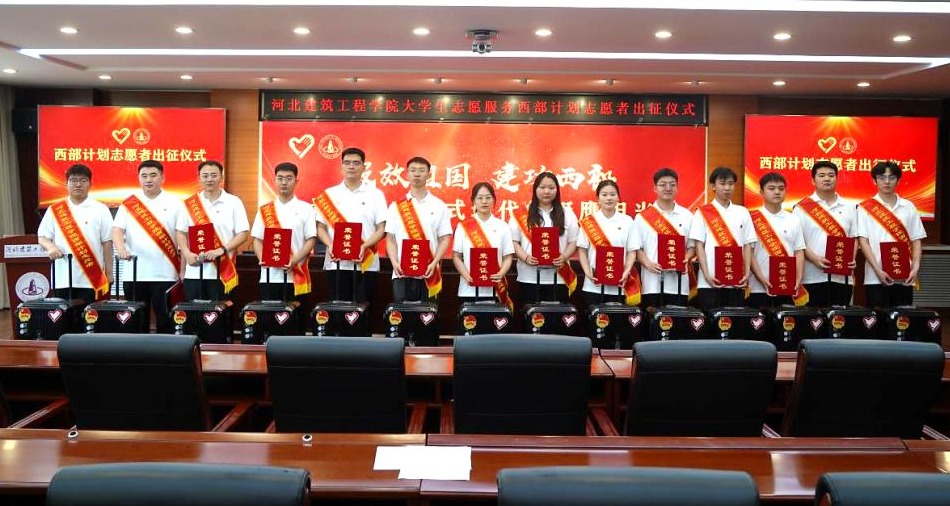 青春激蕩,使命昂揚。6月13日下午,學校大學生志愿服務西部計劃志愿者出征儀式在崇德樓A406會議室舉行,14名優秀畢業生響應國家號召,胸懷報國之志,即將奔赴西部大地書寫青春華章。校黨委書記翁維素、副校長趙海軍出席儀式,黨委組織部、宣傳部、學工部、研工部、校團委負責人及相關院系黨委書記、副書記、團委書記、輔導員及在校生代表參加儀式。