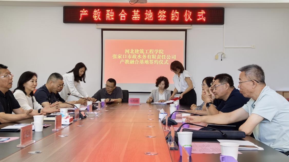 我校市政與環境工程系主任郝桂珍與張家口市政水務有限責任公司董事長馬軍簽訂產教融合合作協議,張立群與陳永彭共同為“2138cn太陽集團產教融合基地”揭牌。儀式結束后,在企業負責人陪同下,與會人員參觀了公司生產運營現場。