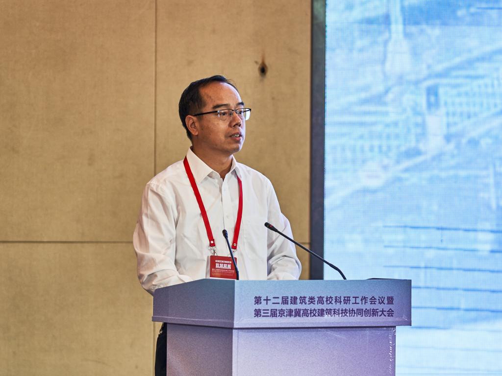 住房和城鄉建設部標準定額司二級巡視員陳新致辭。他指出,建筑行業作為國民經濟的支柱產業,正經歷著從“建造”向“智造”、從“規模擴張”向“質量效益”的深刻轉型。相關高校要順應時代發展需要,對標城市更新等國家戰略需求,加強前瞻科研布局,以科技賦能國家發展;要激發創新活力,構建“產學研用”深度融合機制;要堅守育人本位,推動數智技術與教育深度融合,培育兼具創新能力和家國情懷的建設者。
