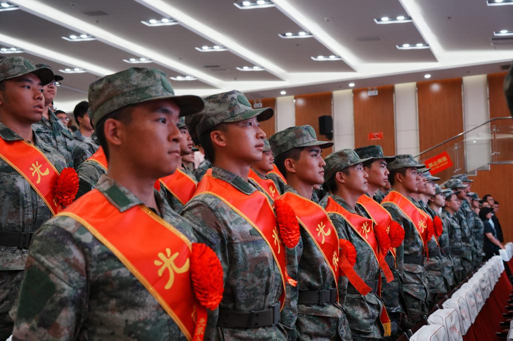 全體入伍新兵身披綬帶,莊嚴宣誓。