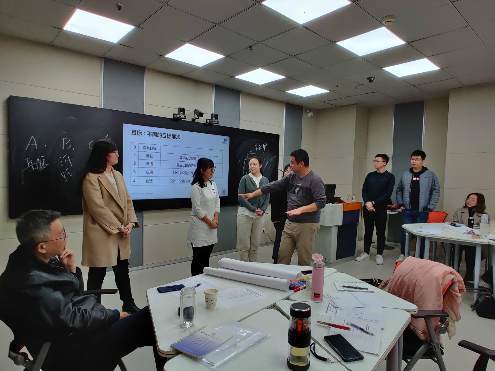 周付安老師主要圍繞“教學(xué)設(shè)計(jì)意識(shí)、五星教學(xué)原理、BOPPPS模式、撰寫(xiě)學(xué)習(xí)目標(biāo)、學(xué)習(xí)活動(dòng)的設(shè)計(jì)”五個(gè)模塊展開(kāi)。周老師通過(guò)風(fēng)趣幽默地講解及師生互動(dòng)等方式帶領(lǐng)參訓(xùn)教師學(xué)習(xí)了“五星教學(xué)設(shè)計(jì)原理”,指導(dǎo)教師們從“聚焦問(wèn)題”“激活舊知”“示證新知”“應(yīng)用新知”和“融會(huì)貫通”五個(gè)方面進(jìn)行教學(xué)設(shè)計(jì)。周老師引入了大量的教學(xué)及生活案例來(lái)幫助大家理解這些教學(xué)設(shè)計(jì)方法,就老師們的教學(xué)設(shè)計(jì)進(jìn)行現(xiàn)場(chǎng)分析,提出合適的教學(xué)建議。周老師講解深入淺出,生動(dòng)有趣,富有感染力,具有較強(qiáng)的實(shí)踐性和指導(dǎo)性。教師們紛紛表示收獲滿滿,充分意識(shí)到教學(xué)設(shè)計(jì)和教學(xué)策略對(duì)提高教學(xué)水平的重要性,對(duì)以后的課堂教學(xué)起到良好的指導(dǎo)作用。