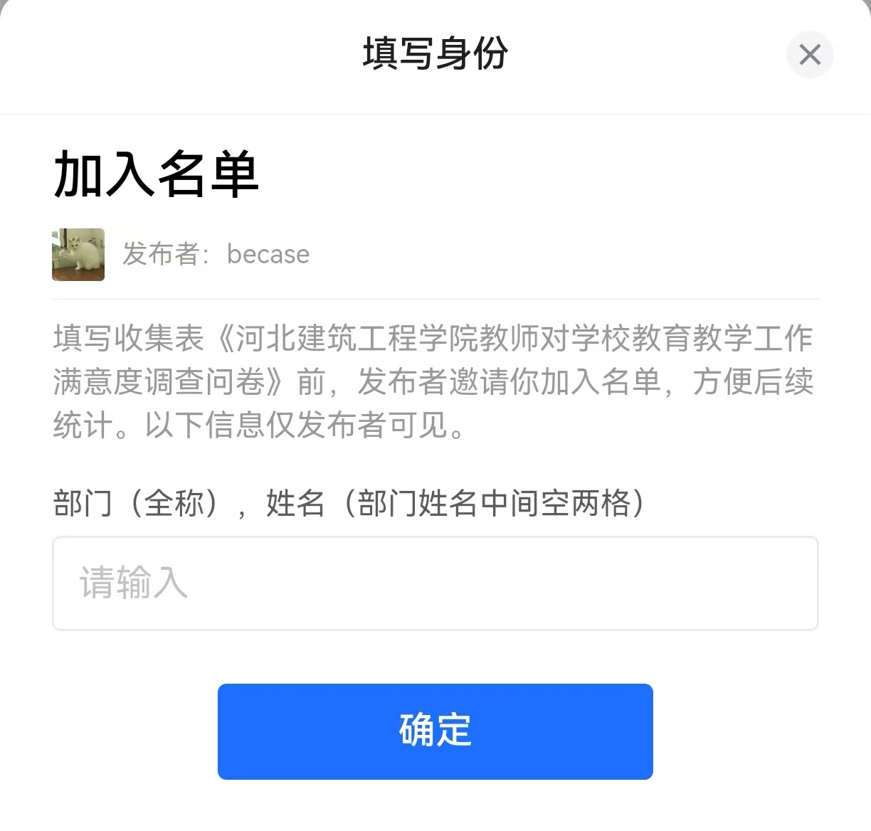 本項調查采用線上問卷形式,教師通過電腦端或手機端登陸填寫。教師登錄后,根據提示信息填寫所在部門和姓名,方可進入問卷頁面,注意一次性填完,中間不能保存或退出,否則調查數據無效。