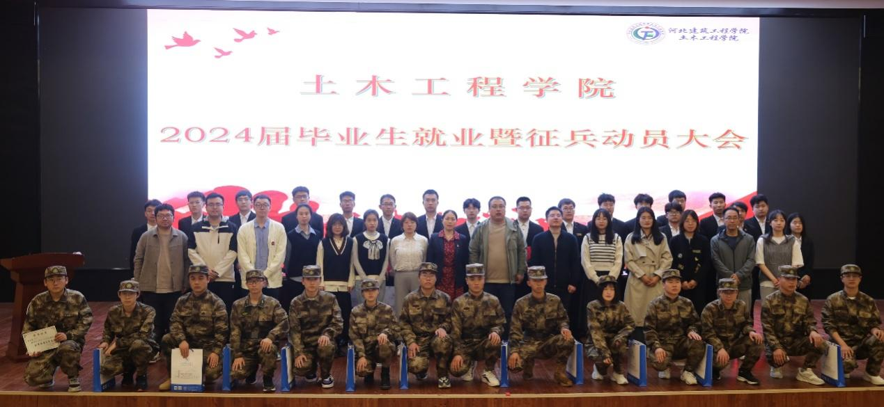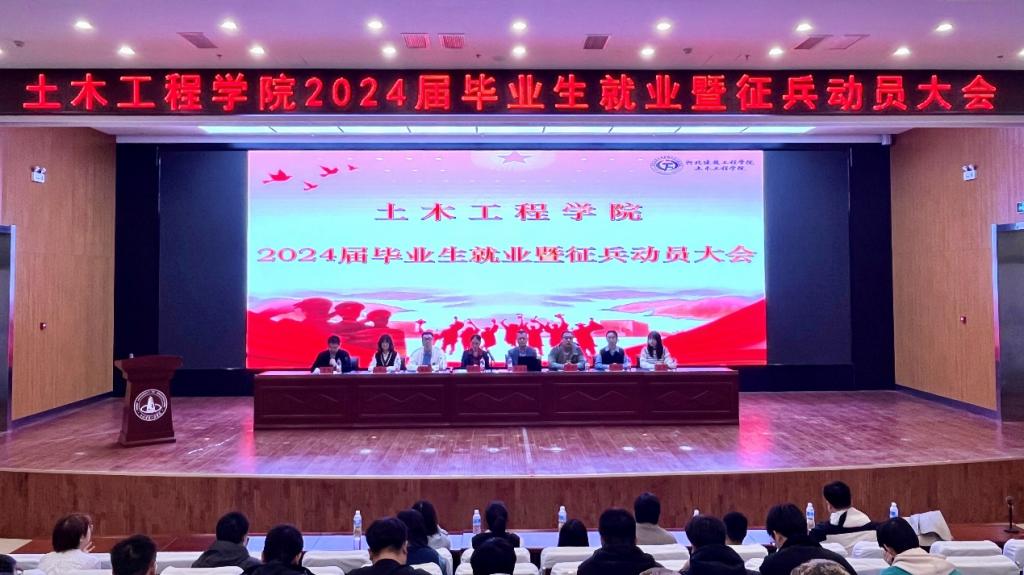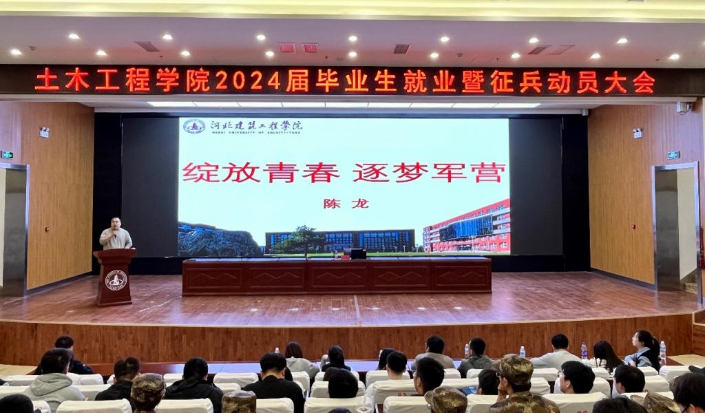 土木工程學(xué)院于3月21日下午召開了2024屆畢業(yè)生就業(yè)暨征兵動(dòng)員大會(huì)。會(huì)場分設(shè)新能源報(bào)告廳和明德樓102教室,學(xué)院黨委副書記賈紹寧、學(xué)生處征兵軍訓(xùn)工作辦公室主任陳龍、專兼職輔導(dǎo)員和2024屆畢業(yè)生共計(jì)700余人參加了此次大會(huì)。
