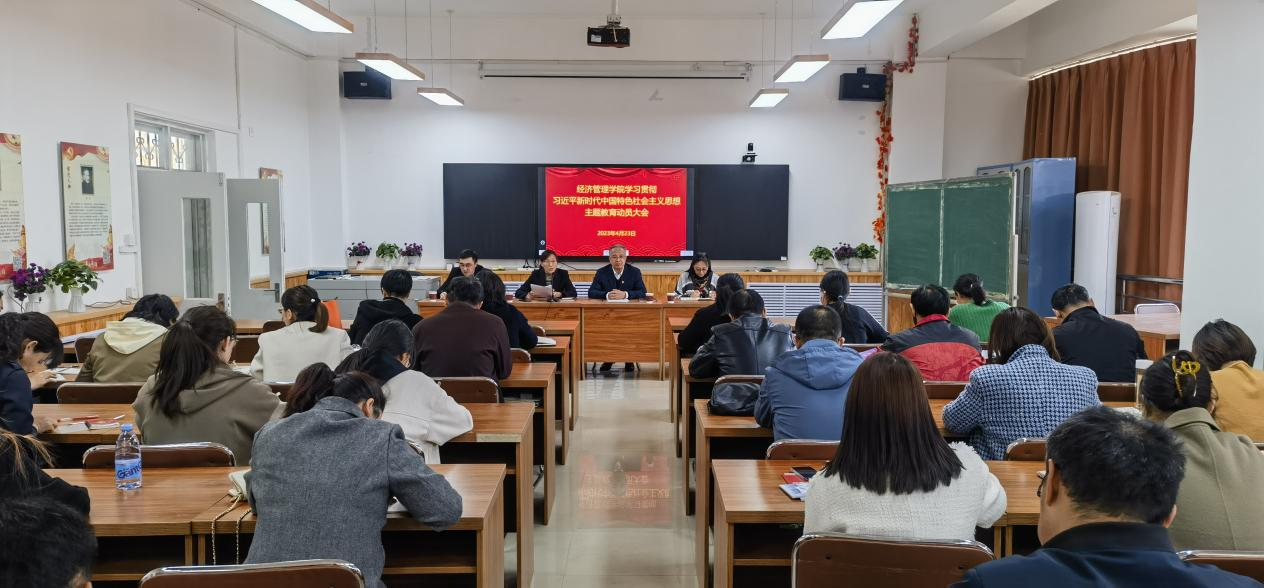 4月23日,經濟管理學院在崇德樓C403會議室召開學習貫徹習近平新時代中國特色社會主義思想主題教育動員大會。學院黨委書記、院長張國興作動員講話,黨委副書記劉格主持會議并介紹了《經濟管理學院學習貫徹習近平新時代中國特色社會主義思想主題教育工作方案》(院黨[2023]4號)及主要學習教育安排。學院科級及以上干部、全體教師黨員和學生黨員代表參加了會議。