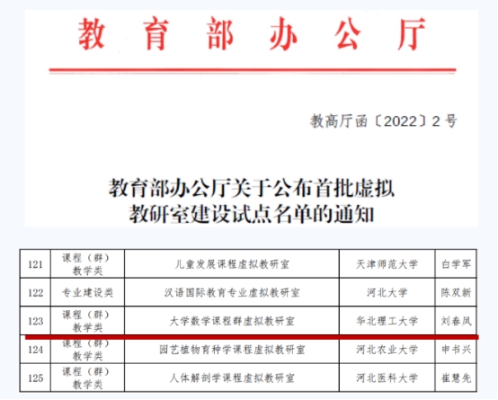 近期,教育部辦公廳公布全國首批虛擬教研室建設試點名單,確定首批虛擬教研室建設試點439個,大學數(shù)學課程群全國共4個,華北理工大學劉春鳳教授牽頭申報的“大學數(shù)學課程群虛擬教研室”獲批。我校數(shù)理系數(shù)學教研室有幸參與建設,與全國同行專家相聚云端,助力大學數(shù)學的建設,助力高校人才的培養(yǎng)。