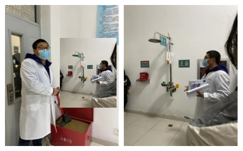 市政與環(huán)境工程系實驗中心主任徐利老師講解了在實驗室可能出現(xiàn)的安全問題及隱患,并逐一做出應急處置措施演練。首先帶領全體師生認真學習了《市政與環(huán)境工程系實驗室突發(fā)安全事故應急預案》,了解實驗室火災、爆炸、中毒、觸電及化學品灼傷等情況的應急措施。然后,介紹了實驗室室內煙霧報警器、易燃氣體報警器等安全預警裝置的作用,逐一演示應急噴淋、應急洗眼器、緊急救護用品、防毒面具、滅火毯以及消防干沙等緊急用品的使用方法,并提出按規(guī)定要求合理使用。最后,師生們根據(jù)培訓知識開展了緊急用品使用、突發(fā)事故處置以及緊急有序迅速撤離等實踐演練。