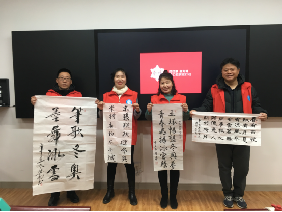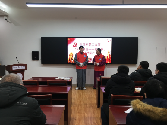 12月17日,數(shù)理系教工支部舉辦“相約冬奧——扛紅旗、當(dāng)先鋒”活動(dòng),邀請信息工程學(xué)院的李超老師與他的搭檔一起帶來了一場精彩絕倫的相聲,他們以詼諧生動(dòng)的方式介紹了張家口悠久的歷史,形象的描繪了自冬奧會(huì)申辦成功以來張家口的巨大變化,一幕幕的場景讓在場的每一位老師都仿佛身臨其境,深深被張家口的發(fā)展變化所感動(dòng)。伴隨著王佐承老師的歌曲《一起向未來》,李濤、冀凱、李彩娟、張建梅四位老師現(xiàn)場書法寫作助力冬奧,行筆瀟灑飄逸,如行云流水,充分展現(xiàn)數(shù)理系教師助力冬奧的激情。
