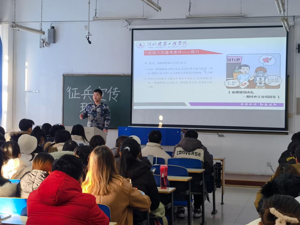 宣講過程中,退役大學生結合自己入伍后享受到的政治待遇、發展前景、經濟收入、優惠政策等方面進行了詳細地解讀,鼓勵大學生自覺響應號召,隨時接受祖國和軍隊的召喚。同時他們結合自身經歷,講述了自己成長的心路歷程和點滴收獲,加深了大學生對我國當前陸軍、海軍、空軍、武警以及火箭軍等軍種建設現狀的認識,鼓勵同學們把個人理想融入強軍夢、強國夢、青春夢,保家衛國,攜筆從戎。班級包聯輔導員進行征兵政策宣傳的查漏補缺,并在宣講現場答疑解惑。