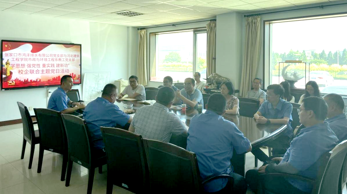 6月29日下午,市政與環境工程系教工黨支部赴張家口市鴻澤排水有限公司,聯合其黨支部共同舉辦了題為“學思想、強黨性、重實踐、建新功”的主題黨日活動。