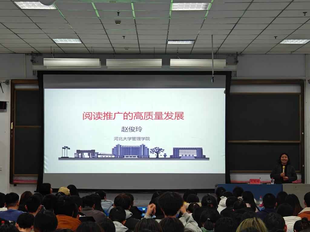 11月28日下午,河北大學(xué)趙俊玲教授應(yīng)邀到我校做了題為“閱讀推廣的高質(zhì)量發(fā)展”的學(xué)術(shù)報(bào)告。報(bào)告會(huì)由信息管理系主任溫秀梅主持,信息管理系全體教師和學(xué)生到場(chǎng)聆聽報(bào)告。