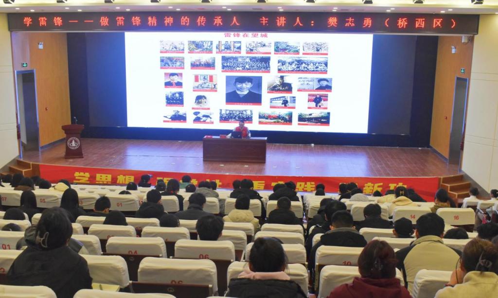 為進(jìn)一步弘揚(yáng)和傳承新時(shí)代雷鋒精神,鼓勵(lì)和引導(dǎo)青年學(xué)生積極踐行學(xué)雷鋒志愿服務(wù)活動(dòng),唱響新時(shí)代雷鋒之歌,3月6日下午,校團(tuán)委特邀請(qǐng)張家口雷鋒精神志愿者服務(wù)隊(duì)黨支部書(shū)記樊志勇為青年學(xué)生作題為《學(xué)雷鋒—做雷鋒精神的傳承人》的主題講座。