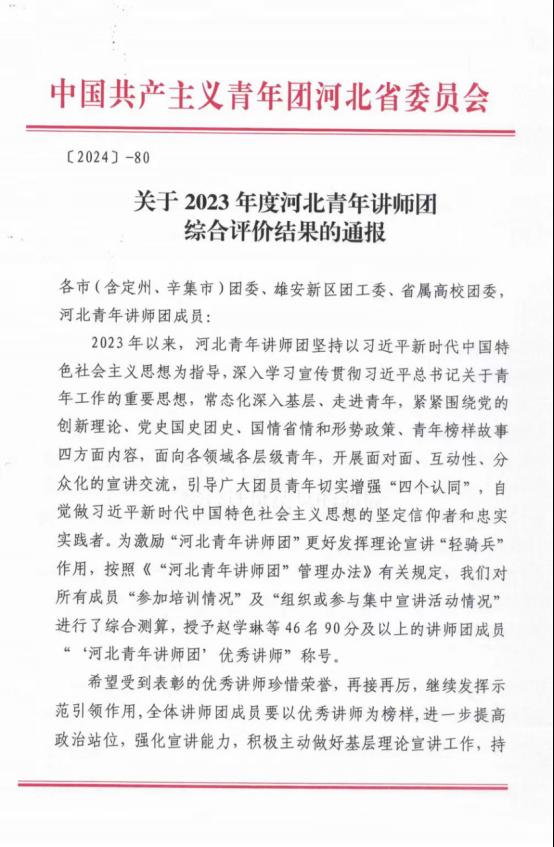未來,我校將不斷加強校內青年講師團隊伍建設,強化宣講能力,積極主動做好基層理論宣講工作,持續推動習近平新時代中國特色社會主義思想往深里走、往實里走、往青年心里走,為建設經濟強省、美麗河北,奮力譜寫中國式現代化建設河北篇章凝聚青年智慧和青春力量。
