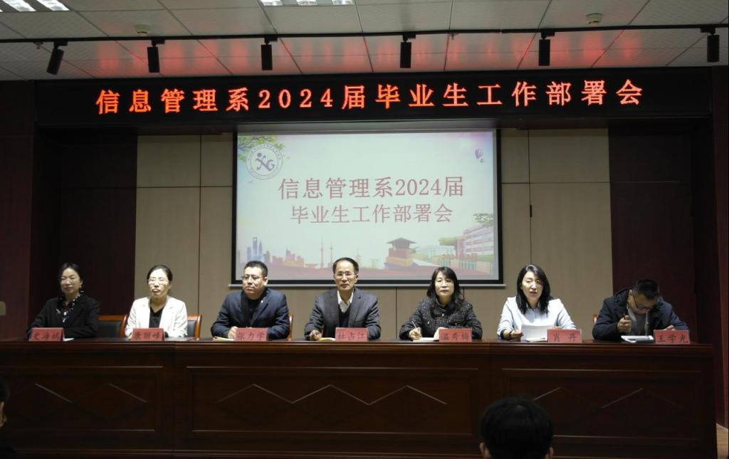 3月25日上午,信息管理系在圖書館培訓(xùn)教室召開了2024屆畢業(yè)生工作部署大會(huì)。信息管理系黨總支書記杜占江,主任溫秀梅,副書記張力學(xué),副主任肖丹,教學(xué)辦公室主任康麗峰,實(shí)驗(yàn)室主任王學(xué)光出席會(huì)議,學(xué)工辦主任史海嫣主持會(huì)議,2024屆全體畢業(yè)生參加。