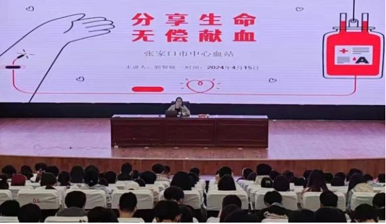 能源工程系團委聯合張家口市中心血站于4月16日在新能源報告廳開展了“熱血當歌,勇毅前行”高校無償獻血宣講活動。張家口市中心血站站長趙建鵬,護士郭智銳、連韋寧受邀出席,我校師生共500余人參加了宣講活動。